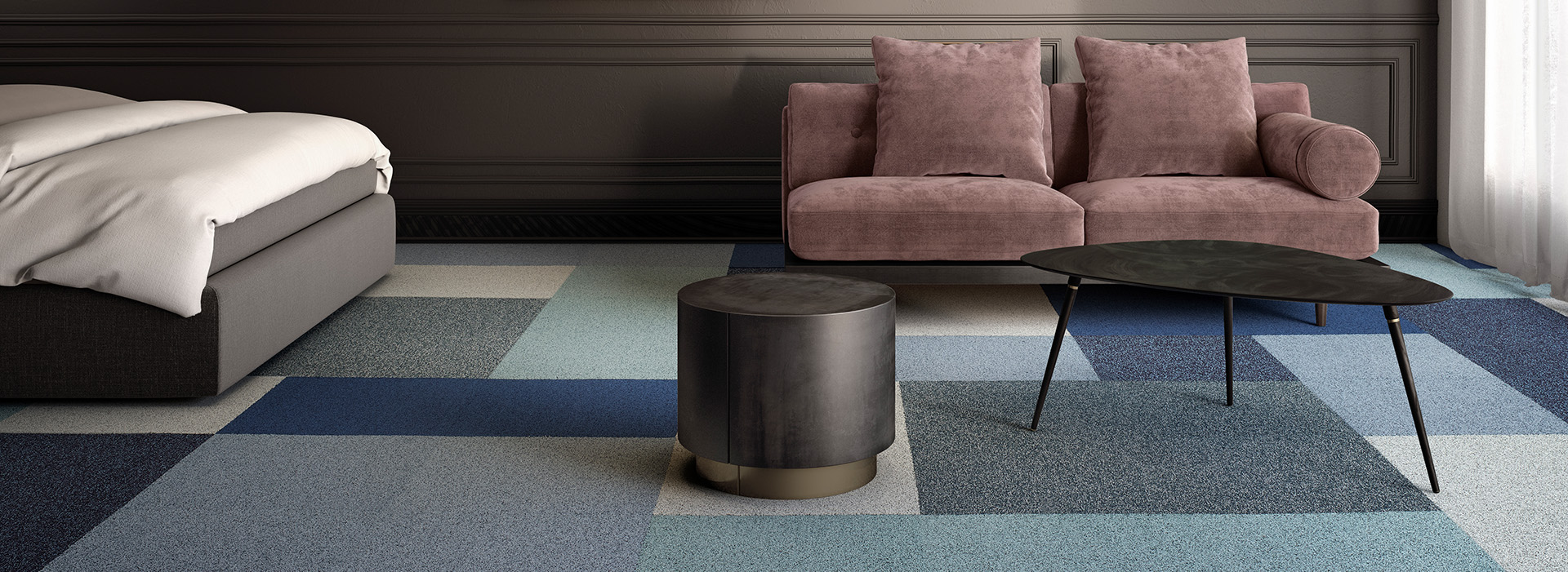 Als kultivierte Antwort auf den Metallic Trend, ist Delight eine Auswahl an völlig bezaubernden Teppichfliesen, die im Interieur mit unerwarteten Lichtreflexen auffallen und in jeder Hinsicht strahlen wollen. Ob Tag oder Nacht, Delight ist bereit auf Basis glitzernder Akzente und in sich abgestimmter Farbpalette in verführerischen Looks, sowohl in Büros als auch in der Hotellerie, perfekt zu glänzen.