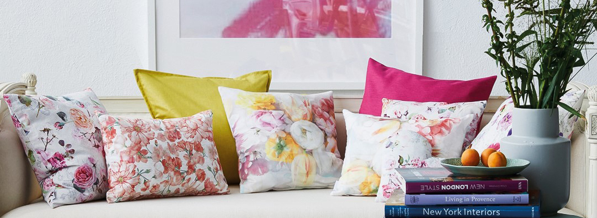 Das Produktportfolio umfasst hochwertige Jacquards, Transparentstoffe, Unis, Dekostoffe, Tischwäsche, Kissen und textile Accessoires.