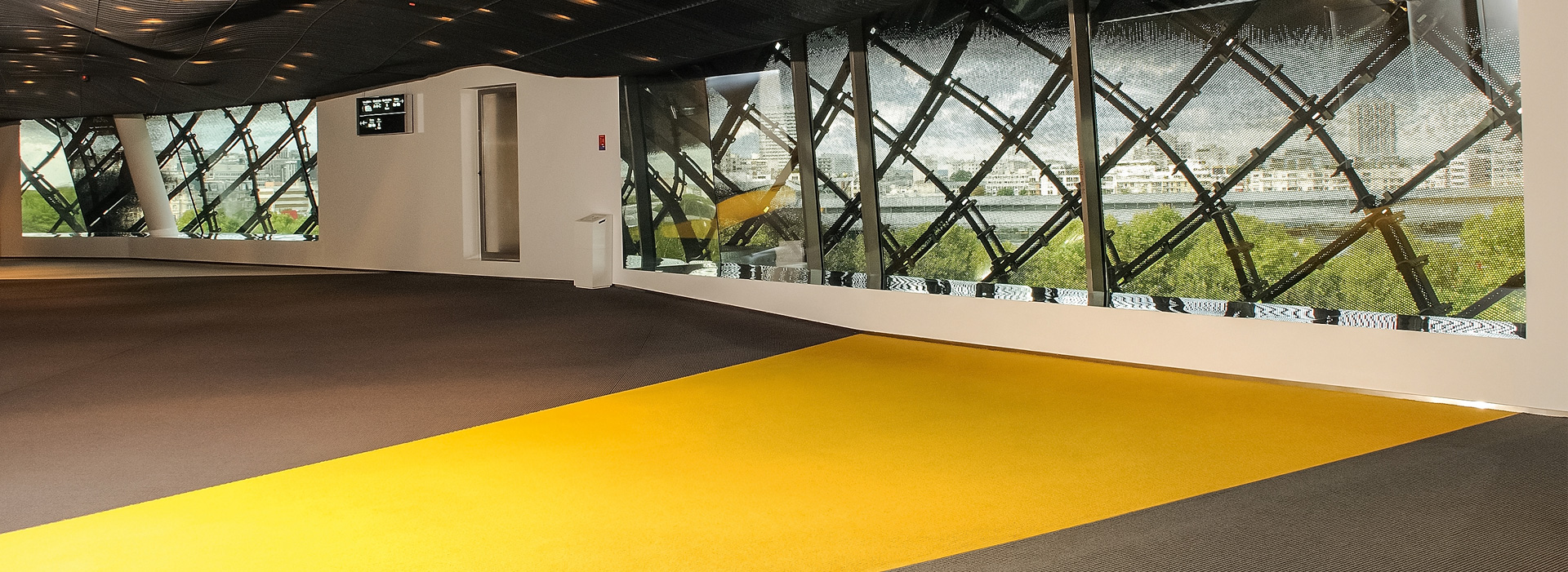 Über die farbliche Gestaltung kann das Unternehmen beeindrucken, beleben, beruhigen, aufheitern – ganz, wie es Corporate Identity und Corporate Culture fordern. Ein agiles Start-up aus der Games-Branche wird andere Signale aussenden wollen als ein traditionsreiches Finanzinstitut. Auch die Qualität des Materials kann ihre Vorteile bei großflächig verlegter Bahnenware optimal ausspielen. So trägt der Teppichboden dazu bei, die Raumakustik zu verbessern, indem er Schall absorbiert. Dadurch wird ein Nachteil kompensiert, denn die offene Gestaltung von Büroräumen mit sich bringt: In offenen, zur Kooperation einladenden Räumen breitet sich natürlich auch der Schall besser aus. Lärm und visuelle Unruhe belasten die Konzentrationsfähigkeit, eine Studie des VDI (Verein Deutscher Ingenieure) schätzt die Leistungseinbußen durch diese Faktoren auf 20 bis 30 Prozent. In den meisten Büroräumen ist heute der Fußboden die größte zusammenhängende Fläche für akustische Maßnahmen. Mit textilem Bodenbelag lässt sich eine raumweite Schallabsorption erzielen – damit wird also ein wichtiger Schritt in Richtung geeigneter Raumakustik getan. Daneben wirken textile Bodenbeläge auch der Entstehung von Trittschall entgegen.