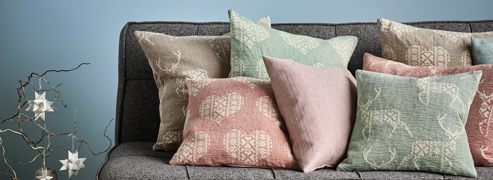 Einst sprach man von „Cocooning“, heute mag man es eher „hyggelig“: Die Rede ist vom Grundbedürfnis des Menschen, es sich gemütlich zu machen in seinem Zuhause – ganz besonders in der dunklen Jahreszeit, wenn es draußen kalt und unwirtlich wird. Heimtextilien wie Kissen mit reizvollen farbigen Bezügen, dekorative Tischwäsche oder Plaids sind vielseitige Stimmungsmacher – mit ihnen lässt sich die Einrichtung ohne großen Aufwand der Jahreszeit und der eigenen Stimmung anpassen. Einige Kissen auf dem Sofa austauschen oder Kissen auf den Esszimmerstühlen und die passenden Sets auf dem Tisch drapieren: Schon weht etwa ein Hauch von Weihnacht durch das Zuhause.
